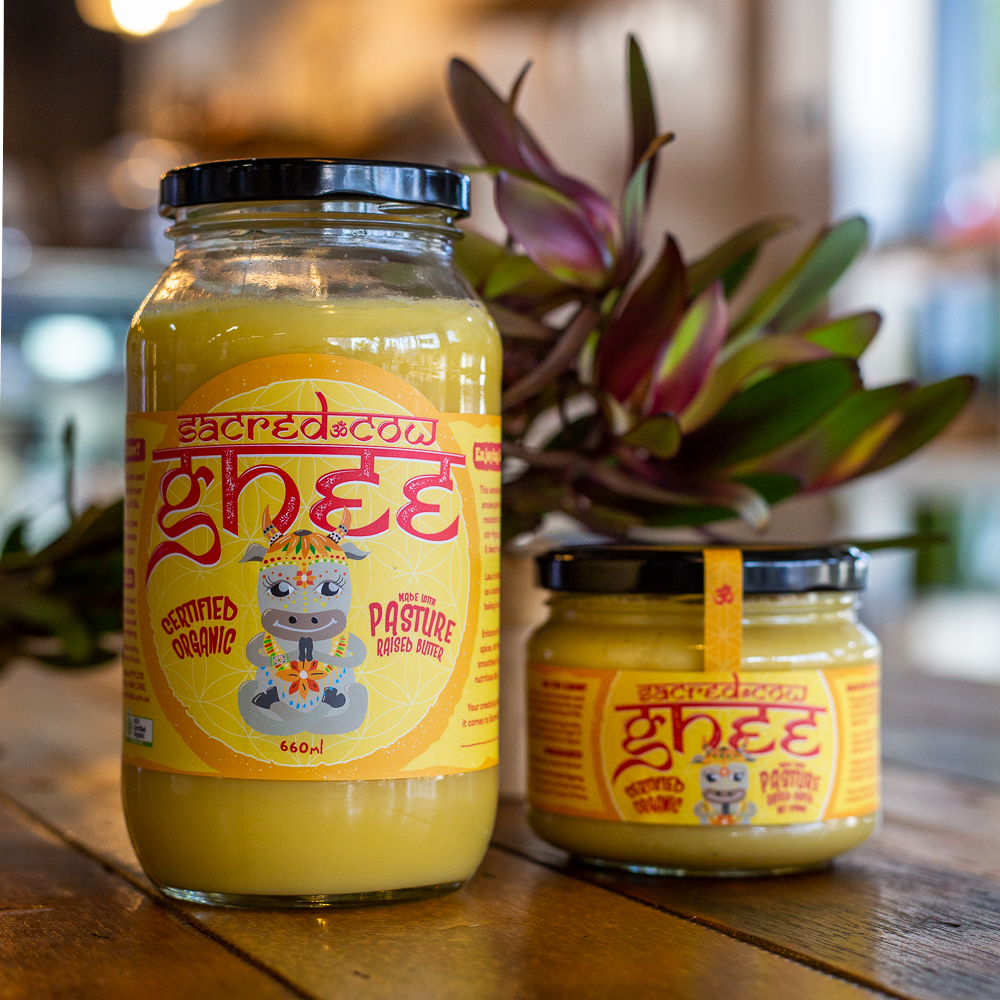 In Ayurvedic medicine ghee is best known for its digestive stimulating effects. It is said to enhance ‘Agni’ or digestive fire, promoting healthy production of stomach acids to break down foods. It also has a healing and nourishing effect on the intestines, providing energy for the cell walls, allowing nutrients to be absorbed and toxins to be effectively removed. The healing properties are due to the butyrate acid content, a short chain fatty acid that also balances gut flora and reduced candida overgrowth. It also contains antioxidants and fat-soluble vitamins A, D, E and K, that nourish the brain and the body and reduce inflammation. For these reasons ghee has a gentle but deeply cleansing and nurturing effects, enhancing vitality and wellness for the body and mind.